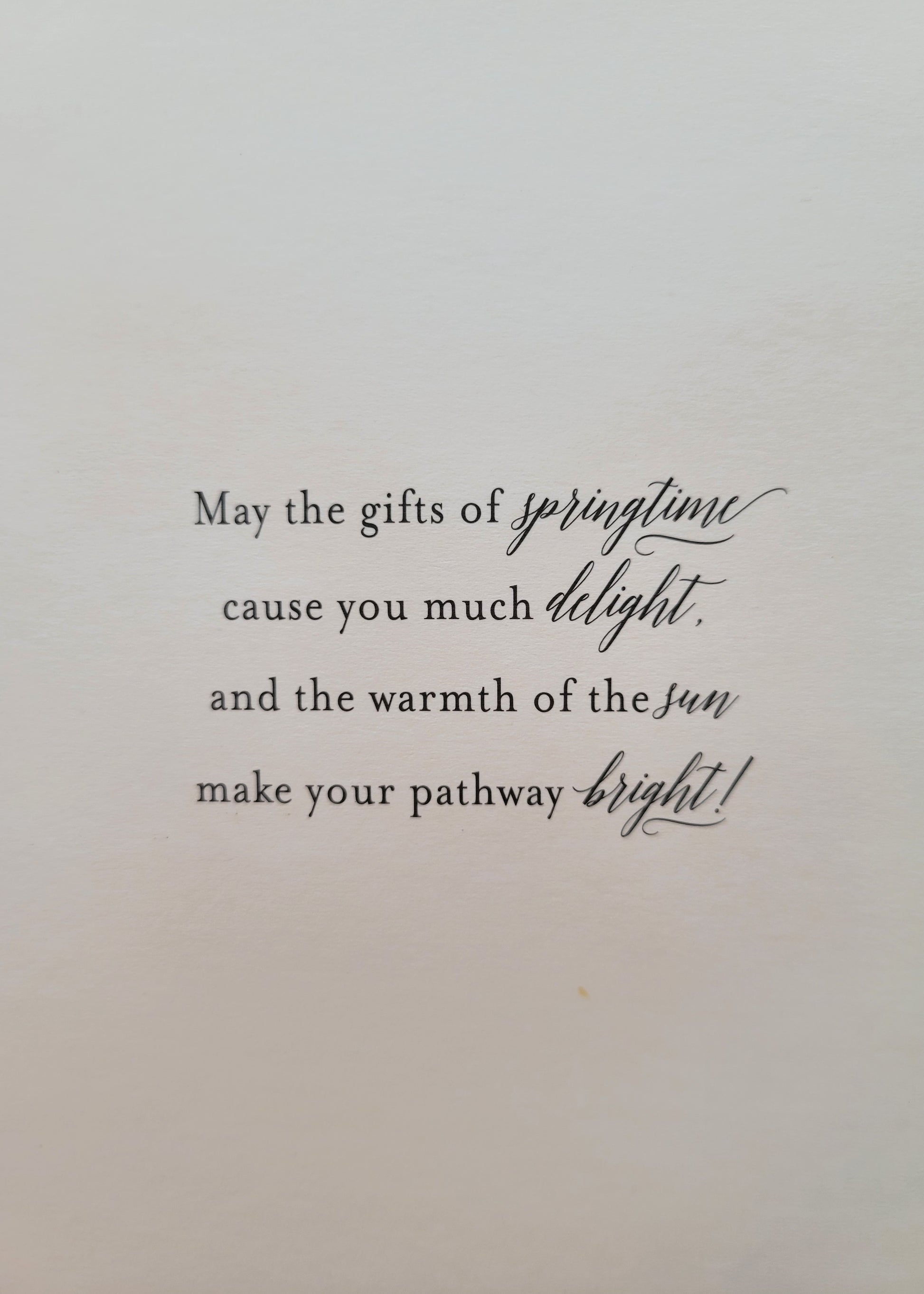 Elegant handmade butterfly shaker card for Spring. A Friendly Hello. Inside: May the gifts of springtime cause you much delight and the warmth of the sun make your pathway bright!